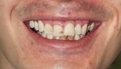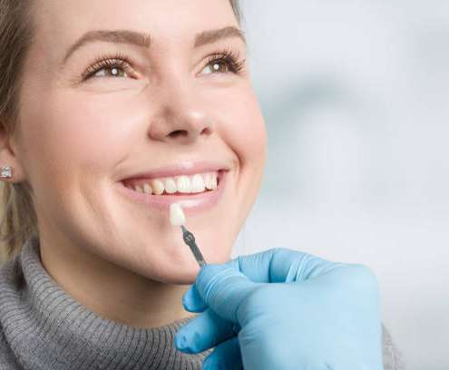 A veneer is a thin layer of porcelain made to fit over the front surface of a tooth, like a false fingernail fits over a nail. Sometimes a natural colour ‘composite’ material is used instead of porcelain.